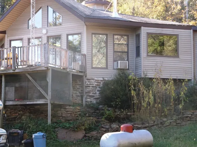 Fantastic view from this octagon shaped home; large wrap around deck; lots of windows; nice kitchen with Oak cabinets; wood stove; propane wall unit; central heat pump needs some repair; 3 window AC units; 2x8 walls; R 28 insulation; propane tank owned; all appliances stay; rural water; green house; shed; workshop area; 2 ponds; spring.