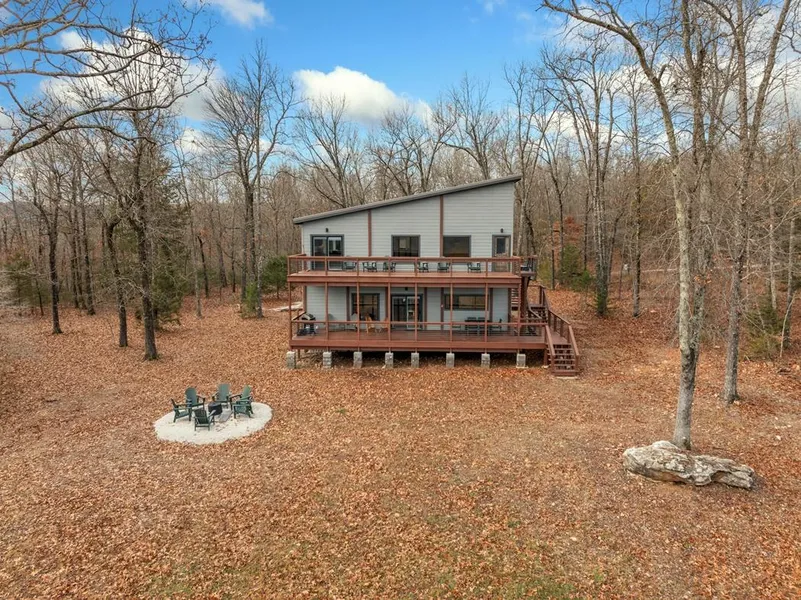 Highlights of the main home include a fully equipped chef's kitchen, luxurious oversized bedrooms (two en suites), walk in closets, a game room, built in wet bar, an outdoor firepit and two expansive decks perfect for watching the fog rise off the Buffalo National River or stargazing. Each level of the home is equipped with individual HVAC and Water Heater. The additional two container homes located in the front of the property consist of one bedroom, living room with kitchenet, a full-size bathroom, and 400sqft covered porch offering a cozy outdoor space to relax and take in the sights and sounds of nature.