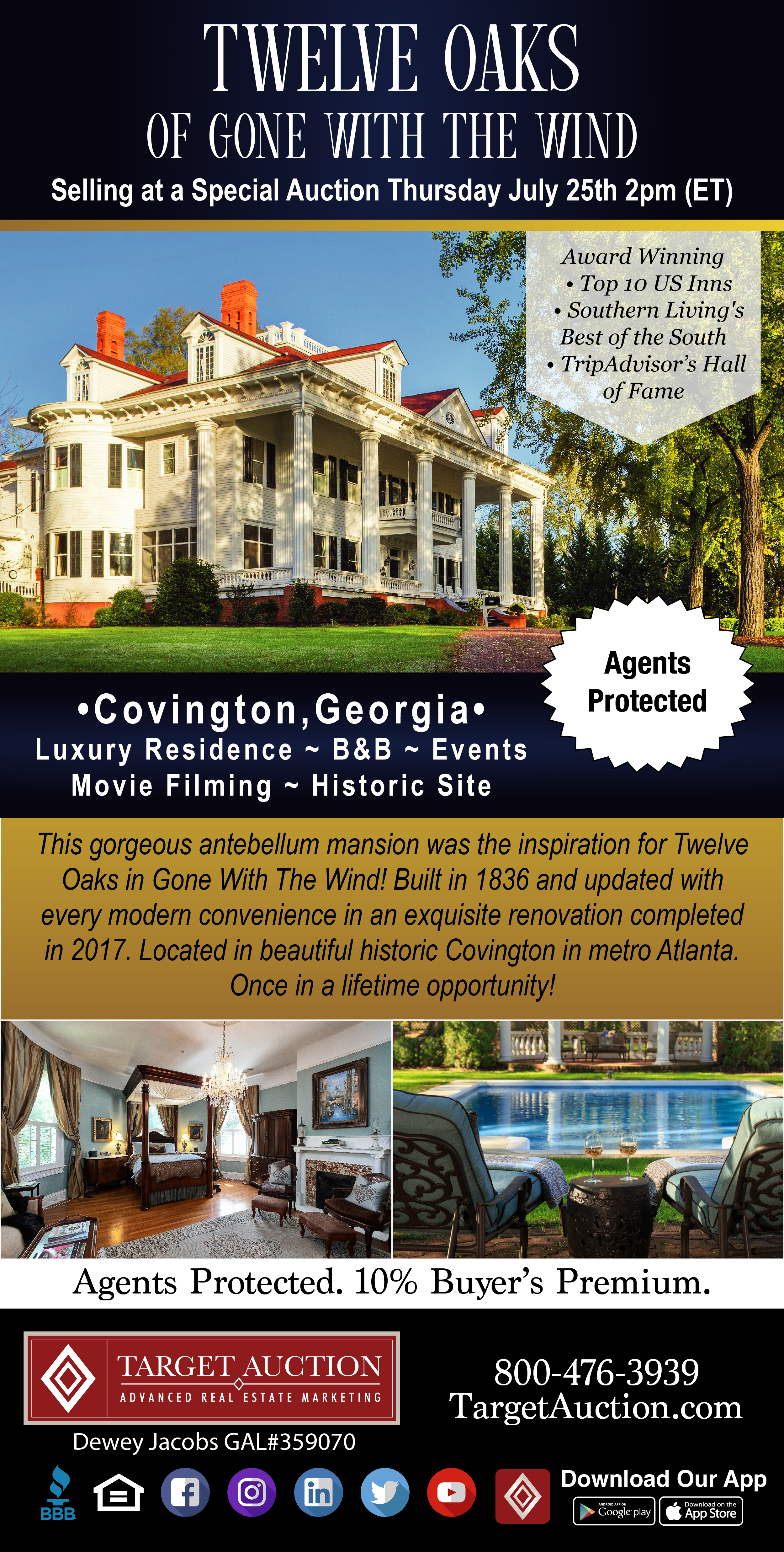 Twelve Oaks of "Gone with the Wind" is For Sale in Historic Covington, Georgia