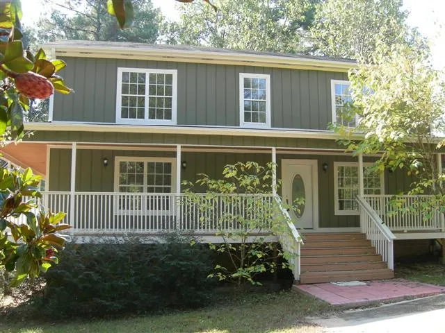 Renovated Inside and Out! This large family home is on 1 full acre in a cul-de-sac with an acreage tracts next store, offering lots of privacy. Fresh paint and a beautiful wooded setting is what first grabs your attention. Then the wide front steps leading to the wrap around porch, welcomes you home. Enter the hardwood floored great room which opens to the dining area and kitchen, this floor plan is excellent for entertaining! Glass windowed french doors access the porches and offer spectacular views of the property. The kitchen features tiled floors, plenty of light stained cabinetry and stainless steel appliances. A half bath just off the kitchen is a welcome addition. Also on the main floor a master bedroom suite features hardwood floors, walk-in closets and a spacious bathroom with jetted tub, separate shower and a granite topped vanity. Upstairs there are 4 additional bedroo...