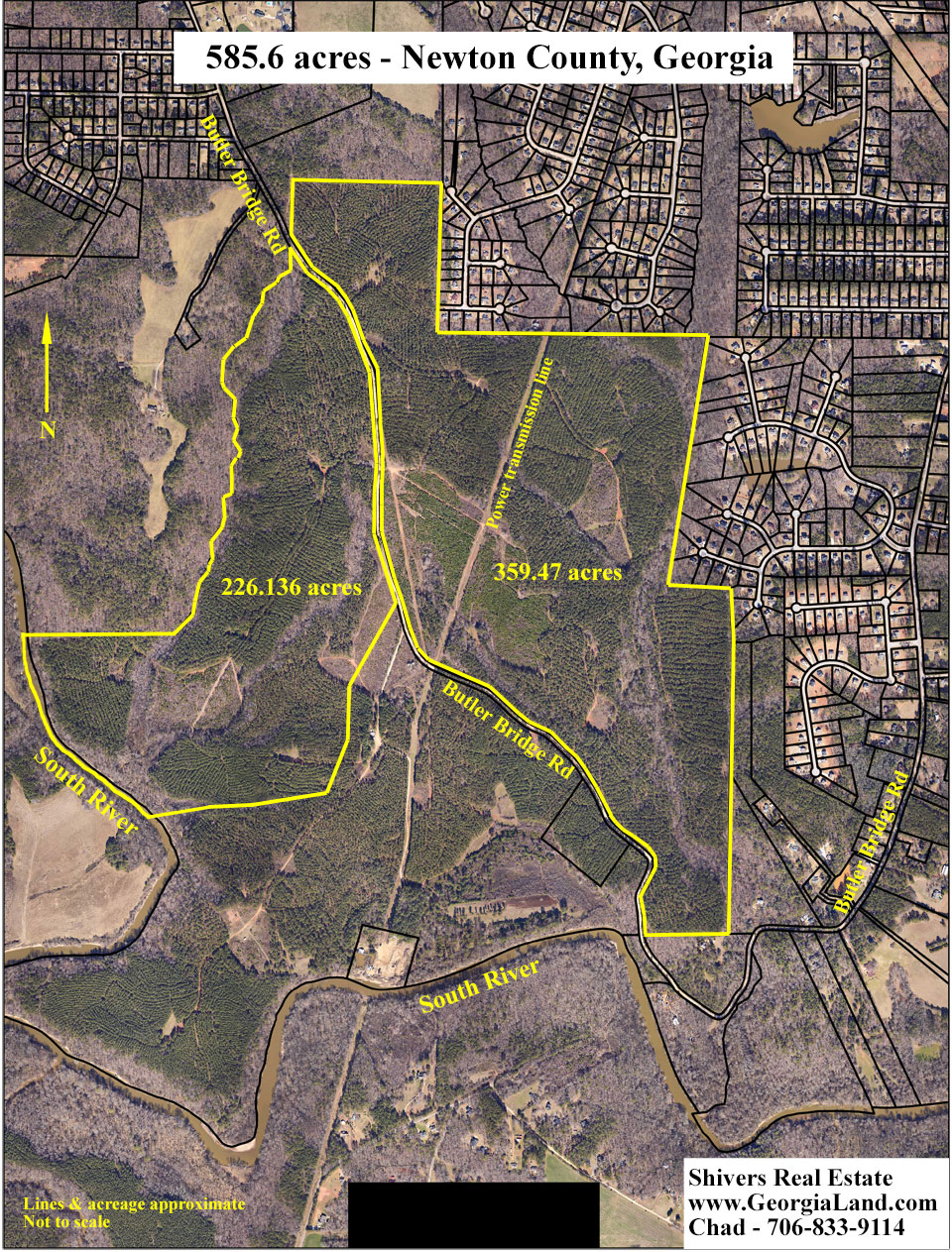 Large timber tract on the South River in an undeveloped pocket of western Newton County, with residential development potential, timber value, hunting and recreation.