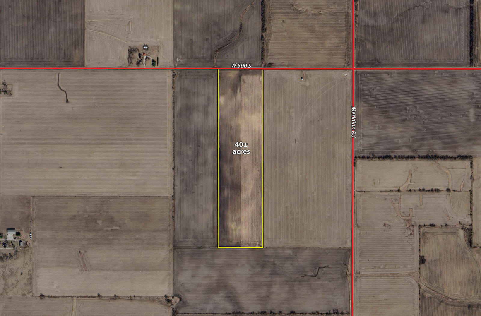 40+/- acres with productive soils & all tillable except for the road. One field with half mile throughs & road frontage on CR 500 S.