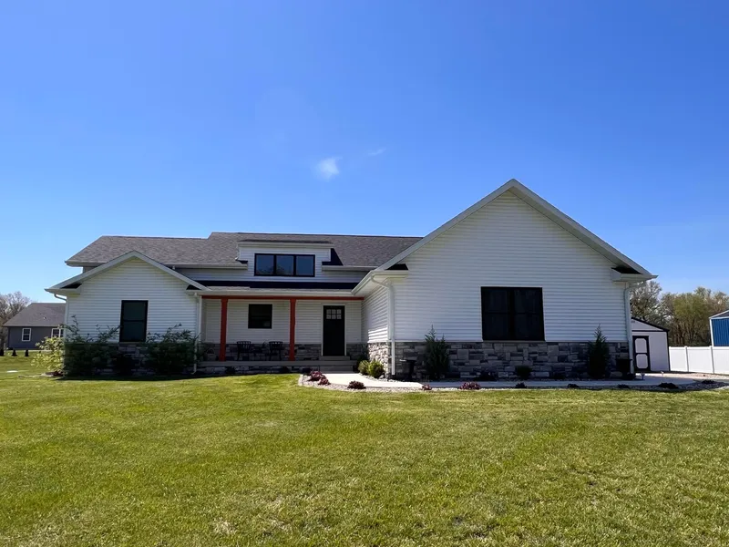 Not your ordinary farmhouse... This light & bright custom designed and built split ranch floorplan is better than new! Features include a sun room, covered front & back porches with cedar beams & posts, beautiful custom kitchen with upgraded cabinetry, granite countertops and stainless steel appliances. Thoughtfully decorated with designer accents, tiled bathrooms, luxury vinyl plank flooring throughout and upgraded lighting to included both recessed lights & overhead fixture in all bedrooms. Crawl space is accessible from the laundry room and is clean & dry for all your storage needs. Oversized three car attached garage has epoxy floor and closet to house all mechanicals. The outside space has been freshly landscaped, with a new 16 x 24 shed with electric, garden area & expanded sun patio added within the last year. Plenty of additional green space on this 1 acre lot to add a pool or additional amenities. Come take a look at this meticulous home today!