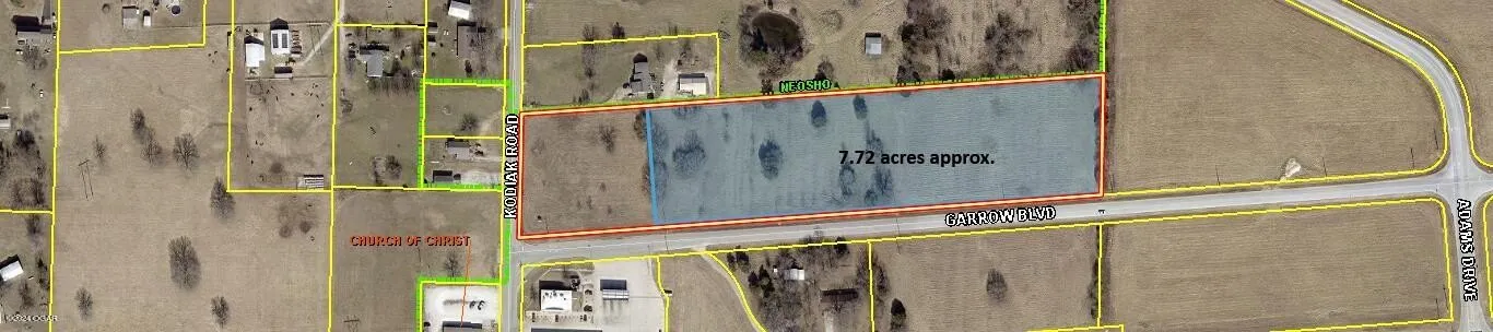 Land is located near the Neosho Highway 60 exit at Kodiak Rd and Garrow Blvd and is 7.72 acres approximately. High traffic location ready to be developed. Utilities are available. High traffic count area. Owner financing would be considered.