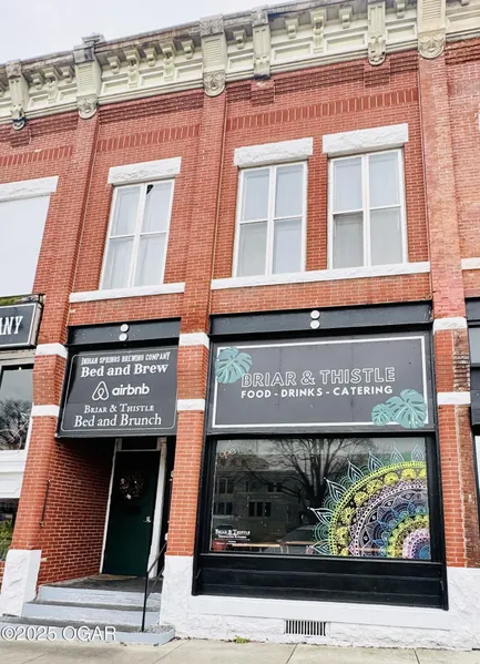 Prime Downtown Neosho Square Opportunity! Rare chance to own a 3,300+/- sq ft mixed-use building located directly on the highly desired Neosho Square. The main level is currently operating as a restaurant, featuring a spacious seating area, checkout counter, commercial kitchen, bathroom, and ample storage, and a vault-ideal for continued food service or adaptable for retail or office use. The upper level offers a beautifully renovated residential space with 2 bedrooms and 1.5 baths, plus an inviting outdoor rooftop patio-perfect for owner occupancy, short-term rental, or long-term income. Enjoy the convenience of private parking in the rear along with public street parking in front, providing excellent accessibility for customers and residents alike. High visibility, steady foot traffic, and a premier downtown location make this a standout investment or owner-user opportunity in the heart of Neosho.