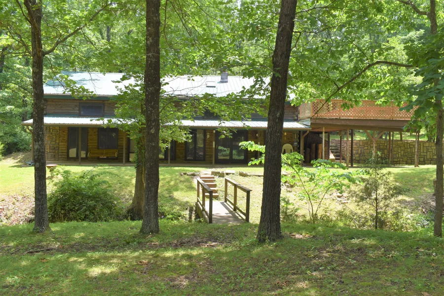 ONE-OF-A-KIND PROPERTY! Custom built cedar log home on 32+ acres just outside the city limits. The home has 2 bedrooms and 2 baths with soaring cathedral ceilings. Loft over the master bedroom. 2 car detached garage/shop and a pole barn. Sit on the front porch or deck and watch the wildlife! Home has an 18K Generac Guardian Elite propane generator in case of a power outage, Buck stove and an alarm system. Some furnishings may convey with the property, excluding antiques. The deck flooring was recently replaced, and the home was power washed. Listings like this don't come on the market often, so don't miss out on this one!