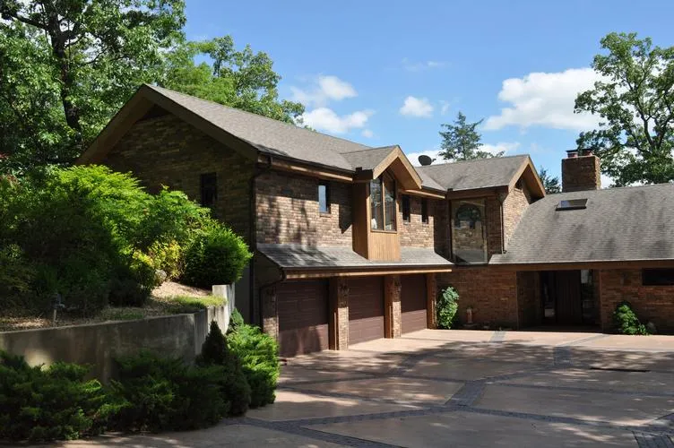 Breathtaking views from almost every room in this rustic architect/owner designed home overlooking 30 acre historic Jolly Mill Park and 700 acre conservation reserve. This home sits on a wooded bluff in a secluded gated community. With over 3,000 sq. ft. of living space this home offers 3 bedrooms, 3.5 baths, 2 living areas, 2 kitchens, 2 utility rooms, 2 fireplaces, sun room, 3 car garage and numerous decks and walkways leading down to the creek. Ground source heat pump.