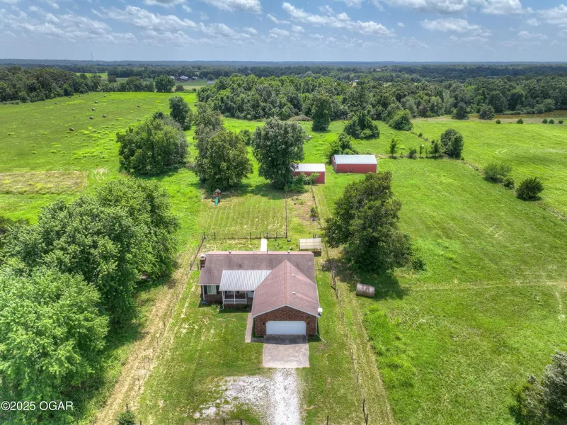 Country living is calling! Take a look at this lovely brick front home on 40 level, green acres with 3 bedrooms, 2 bathrooms, an open living and dining area. Relax by the large brick fireplace or on the back deck with a nice cup of coffee. Got livestock? There are 2 outbuildings, 42x40 and 36x24 with plenty of room for your equipment. Talk about location: less than 30 minutes to Northwest Arkansas or Joplin. Come say ''hay'' to this amazing home today!
