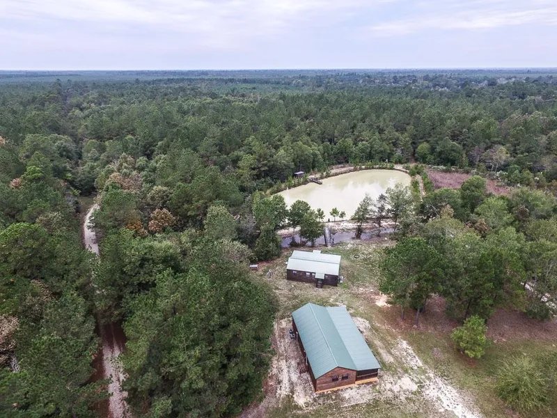 Looking for a weekend place to make your own, but don't have the time to build a cabin and a pond and fix the roads and cut the trails? This place is ready to go! Two very comfortable cabins, large cabin is 880 square feet and contains two bedrooms, two bathrooms, large living and large screened porch for entertaining guests; small cabin is one bedroom, one bath with open floor plan for living/kitchen and large screened with hot tub in porch overlooking pond. The cabins are site-built by Mennonite carpenters just a few years ago. Both cabins overlook a large pond stocked with catfish and blue-gill, perfect for your childrens entertainment. This property is a certified tree farm and managed, which is a benefit to the large game and wildlife that call it home. The adjacent properties are large timber company tracts which insure your privacy. With the blacktop county road, access is great! As if this were not enough, included in the sale are the two shipping containers, with the cabins furniture being available separate. Buy today and start relaxing tomorrow! Survey on file, and showings available at your convenience! Fourteen acres were planted with second generation loblolly pine in 2006, approximately an acre of Cypress was planted near the pond in 2007, and the balance of the property is mixed pine and hardwoods. THIS PROPERTY SOLD EARLIER IN THE YEAR AND IS BACK ON THE MARKET.