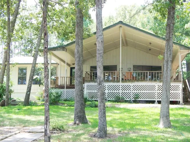 Beautiful updated 3/3 home. Huge family area with vaulted ceilings, tile floors, fireplace, room for two tables and wall of glass facing water. Pretty kitchen with decorative tile on backsplash and nice size laundry beside kitchen. Great entry hall, master bath & large master with view of lake. Metal roof, 2 car garage, vaulted covered porch, deck out on water, boathouse wtih stainlesss steel rails, several storages, sprinkler system and deep, clear water! All on two lots.