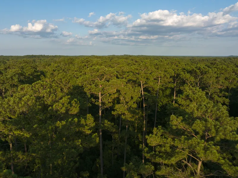 Towering pines blanket this 14 Acre property from end to end. A trail and a small home/camp site have been cleared on the main hill near the middle of the land. Additional underbrushing to open up the forest floor beneath these tall pines would turn this property into a park.