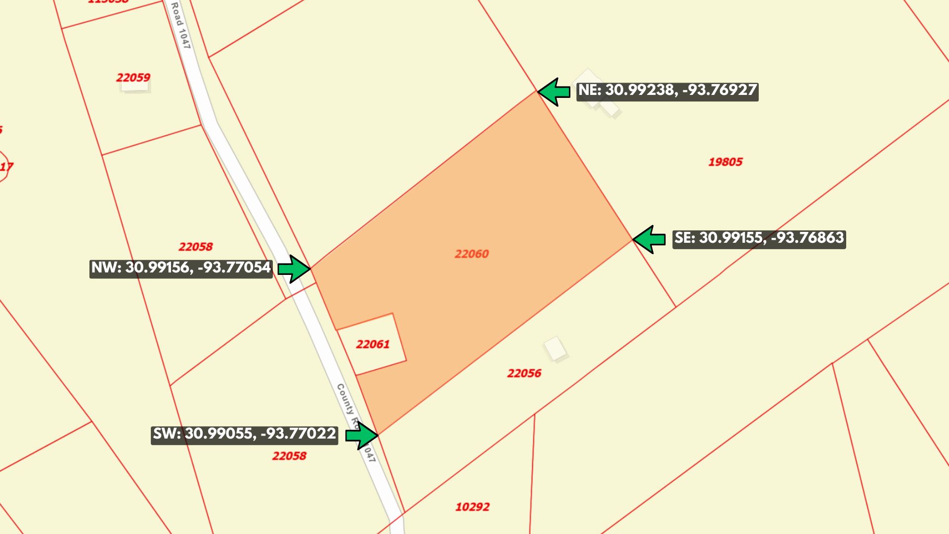 Northeast Corner: 30.99238, -93.76927