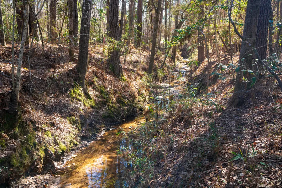 Towering pines blanket this 12 Acre property from end to end. A trail and a small home/camp site have been cleared on the main hill near the middle of the land. Additional underbrushing to open up the forest floor beneath these tall pines would turn this property into a park. Massive hardwoods are also scattered throughout the creek bottom. This creek is exceptional, with clear running water and sandy banks! This water features provides opportunity for self sufficiency while also attracting plentiful game from the vast surrounding timberland parcels.