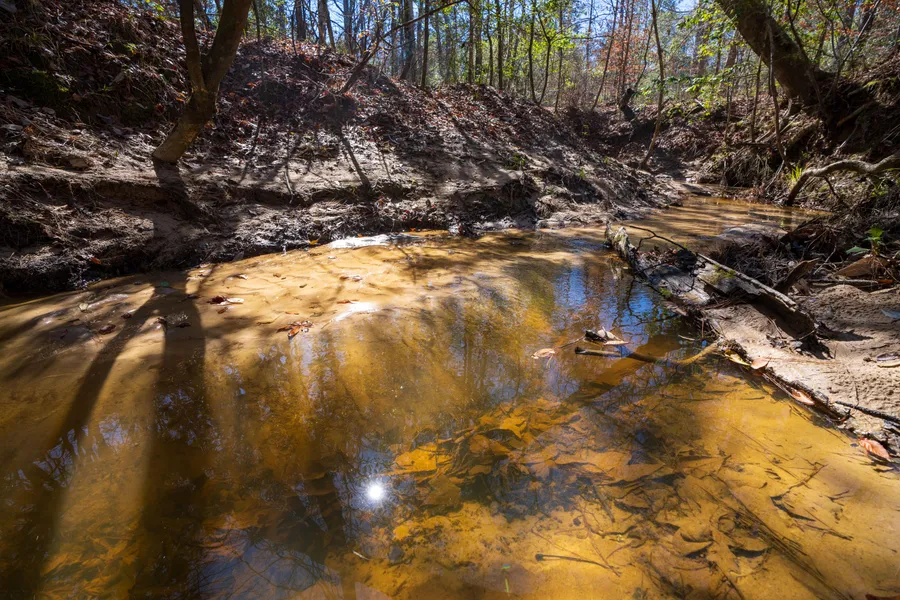 Towering pines blanket this 16 Acre property from end to end. A trail and a small home/camp site have been cleared on the main hill near the middle of the land. Additional underbrushing to open up the forest floor beneath these tall pines would turn this property into a park. Massive hardwoods are also scattered throughout the creek bottom. This creek is exceptional, with clear running water and sandy banks! This water features provides opportunity for self sufficiency while also attracting plentiful game from the vast surrounding timberland parcels.