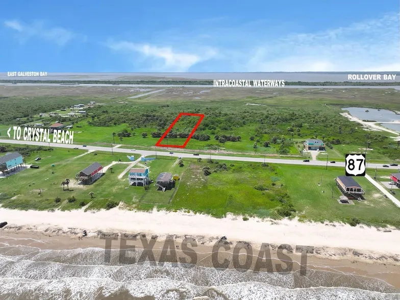 Nearly an Acre in Quiet Gilchrist Beach Area!Enjoy the best of coastal living with this rare find nearly an acre of land located in the peaceful community of Gilchrist Beach. This spacious property offers breathtaking views of both the Gulf of Mexico and Galveston East Bay. Whether you re looking to build your dream beach house or invest in a serene getaway, this location offers privacy, space, and stunning natural beauty, just minutes from bay and the sand and surf.
