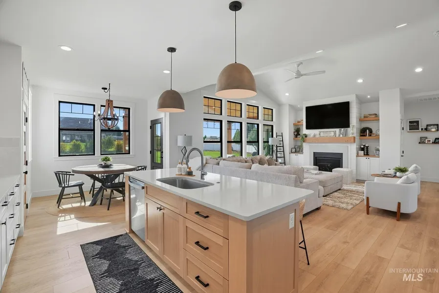 Stunning home on .85 Acres in Harvest Vista. Built in 2021, this exquisite 4-bedroom, 3.5-bathroom Farmhouse style home is a true sanctuary of comfort and luxury. Inside the home you'll be greeted by an open & airy floor plan with vaulted ceilings that seamlessly connect the living spaces. The kitchen features double wall ovens, quartz counter tops, convenient pull out drawers, pantry w/ custom shelving, and an informal dining area that overlooks the large yard & has access to the covered patio. The primary bedroom on the main floor has attached bathroom featuring a soaker tub & separate glass shower. Upstairs you have three additional bedrooms – a secondary suite with a full bathroom attached, and 2 other bedrooms have private sinks and shared shower & toilet. Above the garage is a large space currently set up as family room, but has a closet to make it a 5th bedroom if needed. An expansive covered patio is perfect for enjoying morning coffee, or evening cocktails. You even have a separate firepit area, for fun outdoor entertainment. There are plenty of places to park, the 3 car garage, inside the 30x36 shop , or in the expansive driveway area alongside the home. The insulated shop is set up for entertainment & has a cozy pellet stove, and with the 12ft door, you can store your RV, boat, & extra toys. Don’t miss out on this custom luxury home in Lewiston’s Harvest Vista.