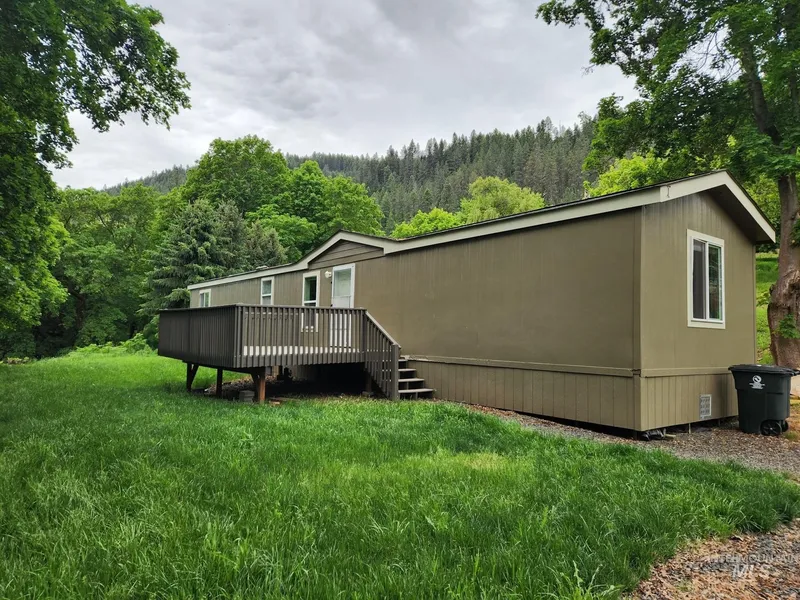 2006 Manufactured home 924 square feet with 3 bedrooms and 2 full baths. Open floor plan with split bedrooms. .66 acres with great views of the mountains. Plenty of space to build a shop and garage. 180 square foot open deck on the front of the house with trex decking. The back deck is covered 180 square feet. Great location walking distance to school and downtown Peck Idaho.