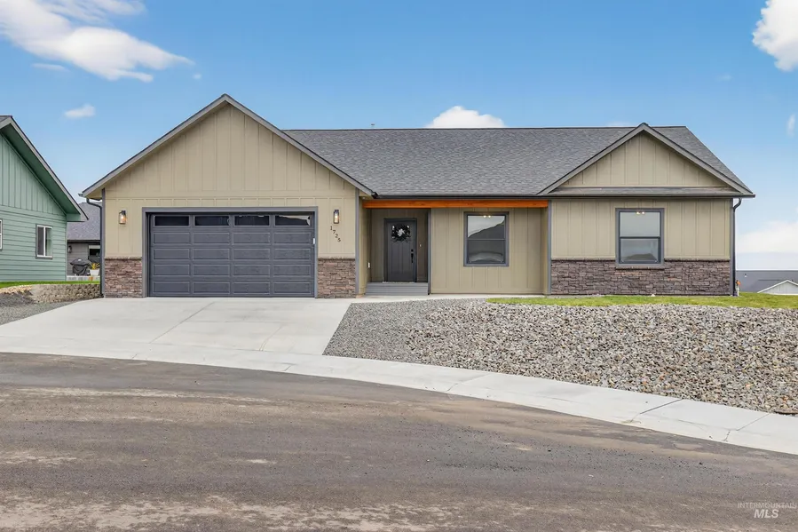 Beautiful New Construction by Castle Builders of Idaho, perfectly situated on a quiet cul-de-sac in the desirable Canyon Crest subdivision! This stunning one-level home offers 1,687 sq. ft. of thoughtfully designed living space with 3 bedrooms, 2 bathrooms, and a 2-car garage. Step inside to an open-concept kitchen, living, and dining area—ideal for entertaining and modern everyday living. The primary suite features a beautifully tiled shower, double vanities, and a spacious walk-in closet. Enjoy outdoor living on the back patio, perfect for relaxing or hosting gatherings. Landscaping, including lawn and sprinkler system, is included for a truly move-in-ready experience. Residents also enjoy access to the neighborhood park and optional RV parking (for a fee) for all your extra toys. Don’t miss this opportunity to own a brand-new home in a highly sought-after location!