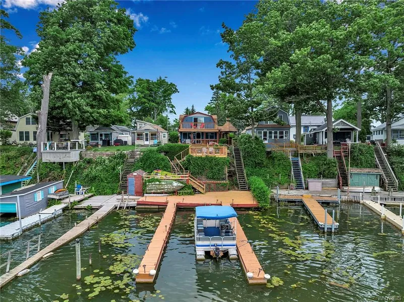 Waterfront Cottage, dock your boat right here! This fantastic summer getaway is set up to entertain. Enjoy Lake Ontario, Tuscarora State Park, The Beach and live music in the summer. The cottage features a very cool bar complete with a kegerator and lounge area overlooking the harbor. This is not your average cottage, so much space here! Offering 3/4 bedrooms, 1 and 1/2 baths, a full-size kitchen, 1st floor laundry, a partial basement, an electric lift and 4 different levels of decks. Tons of dock space, you could rent some out. Appliances and most furnishings stay. All new pex plumbing, updated electrical and many recent enhancements. No vehicles on Sunset Island. Get there by boat! Pontoon boat available for purchase. Choose your favorite deck, then kick back to live music from Sunset Grill directly across the bay! Schedule your appointment now for showings beginning 7/10. Offers will be reviewed as they are received.
