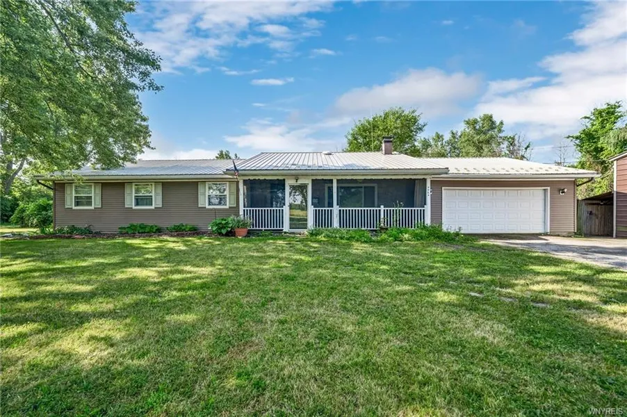 Welcome to 4464 Willow! This 4-bedroom, 2-bathroom ranch spans nearly 2,000 square feet and is nestled on almost 3 private acres. As you arrive, you'll appreciate the low-maintenance exterior featuring newer vinyl siding and a metal roof. Enjoy the screened-in front porch before stepping inside to a spacious family room with a cozy wood burner. The eat-in kitchen boasts ample cabinetry and a stylish subway tile backsplash, with all appliances included. The home features vinyl window replacements throughout. Down the hall, you'll find four generously sized bedrooms, including a massive primary suite. The full basement includes a rec room and a sturdy poured foundation. Central air conditioning ensures comfort year-round. Outside, there is an additional barn/garage with a carport, perfect for contractors or extra storage. The back deck overlooks a private, fenced-in yard. Come take a look!