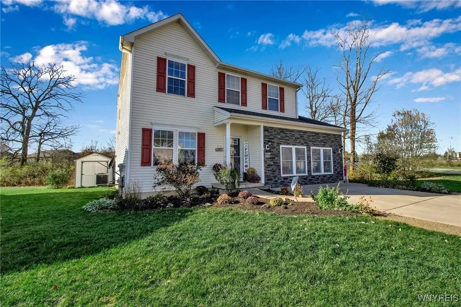 Welcome to 5774 Willow Creek Lane, a beautifully updated home in the town of Cambria, NY, located within the highly desirable Starpoint School District. This fantastic property offers over 3,000 square feet of thoughtfully designed living space, plus an additional 500+ square feet in the partially finished basement. From the moment you step inside, you’ll be greeted by gleaming hardwood floors and a bright, welcoming dining room—currently used as a sitting area—flooded with natural light. The spacious living room, complete with a cozy gas fireplace, is perfect for both relaxing nights in and entertaining guests. The kitchen offers abundant cabinet storage, expansive counter space, a walk-in pantry, and newer stainless steel appliances that make meal prep a breeze. Just off the kitchen, the original garage has been thoughtfully converted into an impressive 22’ by 17’ primary suite. This luxurious retreat features a modern en-suite bathroom and a full wall of closets, providing both comfort and convenience. Also on the main floor, you’ll find a stylish half bath and a dedicated laundry room for added functionality. Upstairs, a versatile loft space offers the ideal spot for a home office, creative studio, or potential bedroom. Three additional generously sized bedrooms and two full bathrooms complete the second floor, offering plenty of space for family and guests. The finished basement adds even more flexibility with over 500 square feet of bonus living area, while the large mechanical room provides ample storage. Additional features include an on-demand hot water tank, central air conditioning, a double-wide concrete driveway, a backyard storage shed, and a patio perfect for outdoor enjoyment. This move-in-ready home truly has it all.