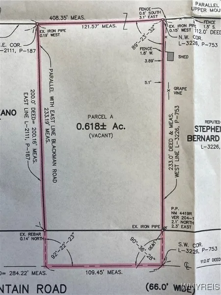 .61 ACRE RURAL RESIDENTIAL LOT MEASURING 110 X 200 ON UPPER MOUNTAIN ROAD, CORNER OF BLACKMAN ROAD. ELECTRIC, TELEPHONE, CABLE AND WATER ARE AVAILABLE ROADSIDE. SIGN IN PLACE.