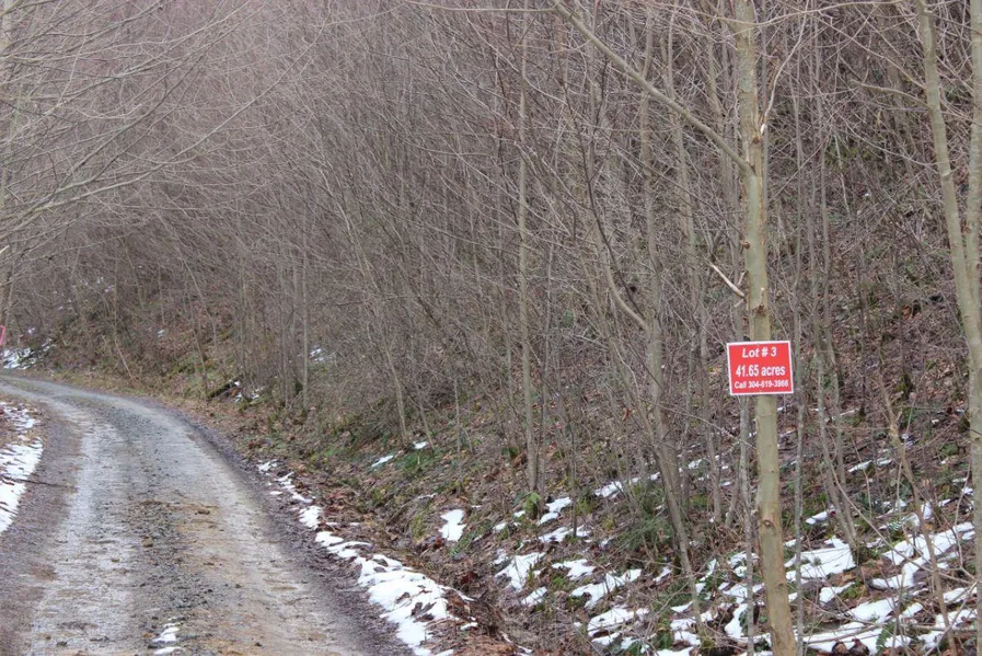 FOR SALE: Lot #3 41.61 acres of raw land located up Little Creek near Muddlety in Nicholas Co. WV. This property is all wooded and would make a nice place for hunting , camping or just a place to get away. It has great access with a 40' surveyed dirt road going through it.