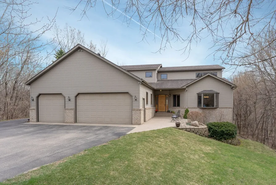 Country living at at its finest, this spacious home offers beautiful views from all of the rooms of the 2.6 acres with a creek bordering the property and minutes from Mankato, North Links Golf Course. This large home has over 5,000 sq. ft. of living. The main floor offers an updated eat-in kitchen, family room, living room, formal dining room, master bedroom, guest bathroom, and laundry room. The 2nd floor has 3 large bedrooms with walk-in closets, bath room, storage, and sitting area. In the basement you will find a family room that walks out to the back yard, along with rec room area, workshop area, utility room and storage room. If you enjoy nature, you will love this wooded lot with the creek that invites lots of wild life. For the person that needs a lot of storage or work area, a 3 stall garage that is finished off and offers a custom flooring, you will also find a 54x26 steel util...
