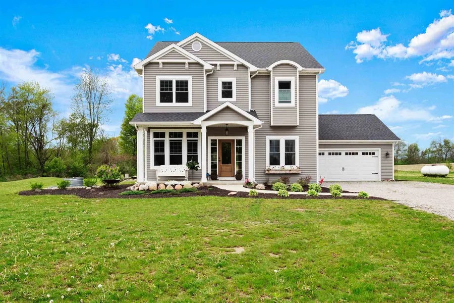 Home right out of a story book! Country living on 6.01 acres in a modern farmhouse full of custom quality upgrades throughout! This 4 bedroom plus den with full basement is only four years young. The large foyer welcomes you to this open concept plan with Andersen windows providing oodles of natural light. Chef???s kitchen designed for large family dinners and entertaining. Custom built cabinets provide an abundance of storage along with a walk-in panty. Huge quartz island and butcher block countertops offer lots of surface space. All the stainless steel kitchen appliances stay with home along with the washer and dryer. The best of both worlds... modern amenities and energy efficient home with true antique touches throughout. The main floor den has stunning repurposed solid oak pocket doors. The master bedroom has a bath en suite that is sure to please featuring a spacious custom tile sh...