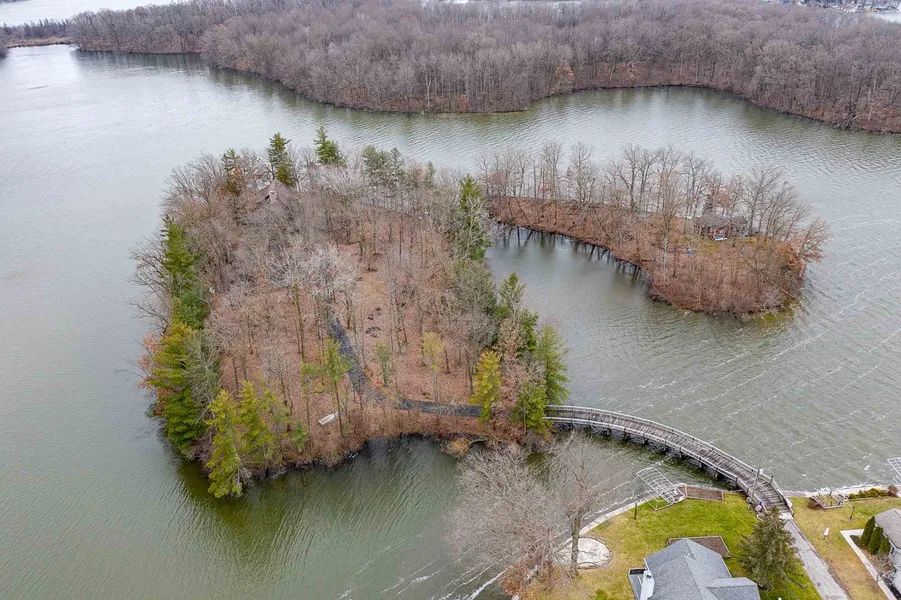 Outstanding Property! Don't miss this RARE, GATED ISLAND PARADISE with GUEST HOUSE and PRIVATE BRIDGE from the mainland to the island. This amazing log home is on 2+acres on SYLVAN LAKE. The rustic, park-like setting has a beach area, dock, gazebo, outstanding views and more! The main house sports Soaring Wood Cathedral Ceilings, huge Wooden Beams, Open-concept design, a Massive Floor-Ceiling Stone Fireplace, and beautiful architecture. The kitchen is open to the great room and has an eat-at island and bar. The large master bedroom and bath are on the main. The open loft leads to 2 more spacious bedrooms and another full bath. Downstairs, a finished basement has a rec room, laundry and storage. The newer Goodman furnace (8 yrs) is equipped with April-air. A new roof with tear-off was done in 2010. Enjoy a SECOND HOME on the property for friends and family, the GUEST HOUSE! IT IS INCLUDED IN THE PRICE. The guesthouse kitchen has an eat-at bar, living area, 1 bedroom on the main and dorm style sleeping upstairs with room for 4 beds. It is complete with a 2 car attached garage. There is also a very nice, large asphalt area for parking between the 2 homes. The dock, gazebo, framed porch swing, all appliances in both homes, washer and dryer, and an American National HMS Home Warranty are all included. You will fall in love with this log home and its natural beauty, the incredible views and privacy. The beach area, the pristine land and living on a great, all-sport lake chain, make this home the one for you! Don't miss this chance of a lifetime! Discover your island oasis on North Shore Drive today!