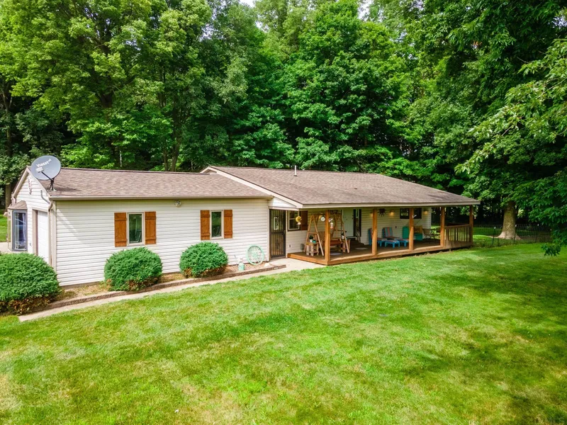 If you're looking for a home with a country setting on a partially wooded 4.72 acre lot, yet close to town with SO MANY amenities, this is it! This property features custom wood shutters, a concrete pad for RV/boat storage with electric and water hookup, TWO 1000 gallon propane tanks, large outbuilding with a shop furnace, concrete floor with drain, running water, and a 60 gallon hard plumbed air compressor! In addition, there's also a large shed, a 10x9 steel grain bin, and another 11x35 outbuilding with electric that could serve as a chicken coop or extra storage. Recent updates include new backsplash and kitchen countertops, all new paint, flooring, and trim in 2020 and new furnace in 2019. The septic was recently pumped and the air ducts were cleaned by Stanley Steamer this spring. This hunter's delight with amazing wildlife oasis right in your own backyard won't last long!