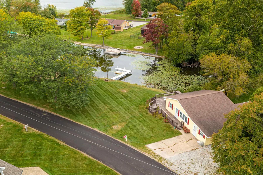 Large 3 bedroom 1 1/2 bath home situated on almost 1/2 an acres with 200ft. of frontage on the channel of Dallas Lake. Dallas lake is on the Indian lakes chain that has 5 connected lakes with 2 of them that are all sport and 3 fishing lakes. Lake was recently stocked and restocked with Walleye. For entertainment there is a drive up or boat up restaurant and bar on the chain. Home has neutral decor and newer vinyl flooring throughout. Many new features include: new 28Ft. x 20 Ft. anodized aluminum pier, new air tank for well, Brand new HVAC system and duct work in 2021. 2 large sheds. One large double door shed and a second storage shed tucked quietly behind shrubs. Home can be sold with almost all furnishings and appliances. Home also has a cell phone tower booster installed. There are just a few items that wouldn't remain. 2018 seadoo trixx 3 jet ski and floating dock, 2021 24ft. Southbay Tritoon with 150hp. 4 stroke motor and gold cart can be negotiated separately. property is agent owned.