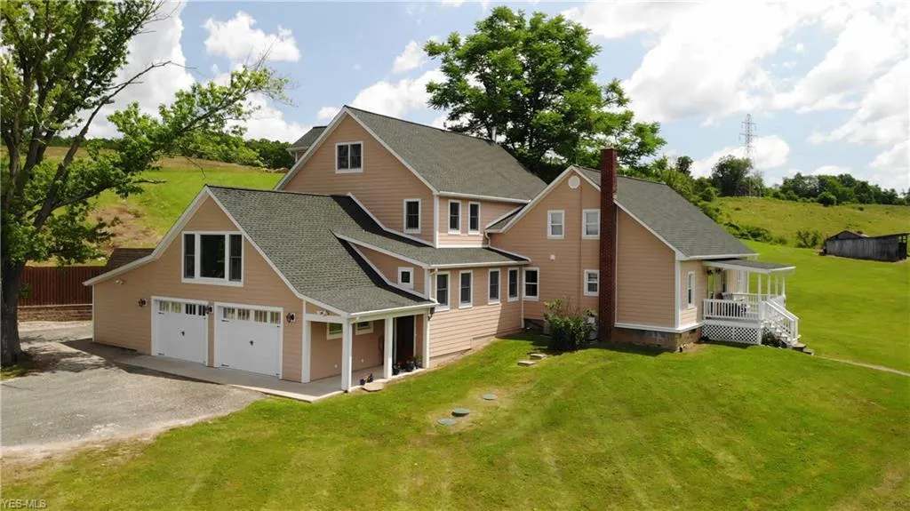 Embrace the magic of this beautiful 1852 farmhouse situated on a quiet country road. The front porch overlooks a valley where the deer love to graze. The master craftsman addition built in 2012 retains all the original charm and character of the earlier Era. This home illuminates the old farmhouse genre and connects to the past while feeling reassuringly alive today, with secret passages that add to the inspiration. Exquisite hickory floors will lead you throughout this stately 8 bedroom 5 bath home consisting of three finished levels including a primary suite with laundry hook up, private deck and courtyard. There are two additional laundry hook ups, including one on second floor. The updates include: 2017 whole house gas generator, Lifetime high wind roof, Hardie Board siding, exterior Duration Lifetime paint by Sherwin Williams, Andersen doors and windows, solid wood interior doors, 2013 septic system and 2 HVAC units. Property includes 141.70 rolling acres containing 63 wooded acres with mature timber consisting of a variety of Oak, Maple, Yellow Poplar, Hickory, Elm, and Black Walnut; 27 acres of pasture, 40 acres of hay fields, outbuildings, a sandstone Spring House with two 5000 gallon cisterns, a 1700 sq ft Bank Barn, and a 1500 sq ft Flat Barn. Seller does not own mineral rights, but as long as the well continues to produce there is free gas to the house. Property to be sold as a whole and farm will not divide. 2018 KitchenQueen Double Burn stove available as a separate purchase.