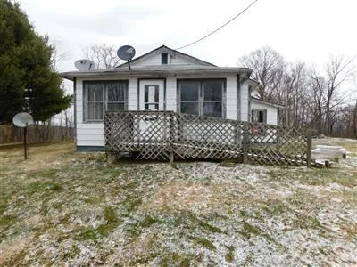 This home is being sold "As-Is" where as is with all its faults. The property sits on top of hill with views. There are two driveways up to the home. There is a separate small building with an open-faced shelter/barn on the property across the street.