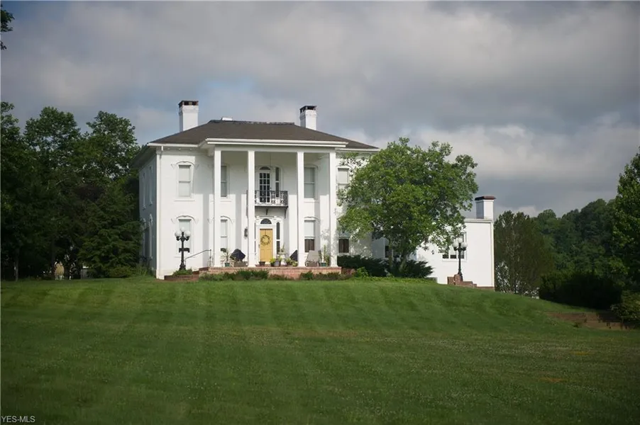 Located in a rural setting 5 miles from Interstate 77. An ideal location bordering two state highways for an oil and gas operations. Office is brick and frame of consisting of 13 offices, 2 reception areas and 3 half baths, kitchen and 2 conference rooms. Large parking lot with a helicopter pad. Pavilion and bus garage has consisting of garage areas for bus and 3 cars, entertainment pavilion and full kitchen. Maintenance shop frame with 5552 SF, for large trucks or equipment, one with mechanic's pit, 2 offices, storage area, full bath. (Septic tank needs to be installed in order to use the BA and utility sink). Barn SF 768. Equipment shed 3240. Main house is brick, 6354 SF, w library, dining room,kitchen, half bath, 3 bedrooms up with 2 full baths. Two additions to the house consist of a living room, master suite w wet bar, bath, sauna, and game room, kitchen and bath addition. Guest house is 2137 SF with living room, kitchen, private bed and bath w laundry; 2nd bed up with sitting room, bath and bed. City water & potable spring, Natural gas well supplying the property, owned in fee. 600 Amp electric service avail. Radio tower with ultra high speed broadband. Entrance gate, brick and wrought iron, w gaslights. Pool has been filled in.