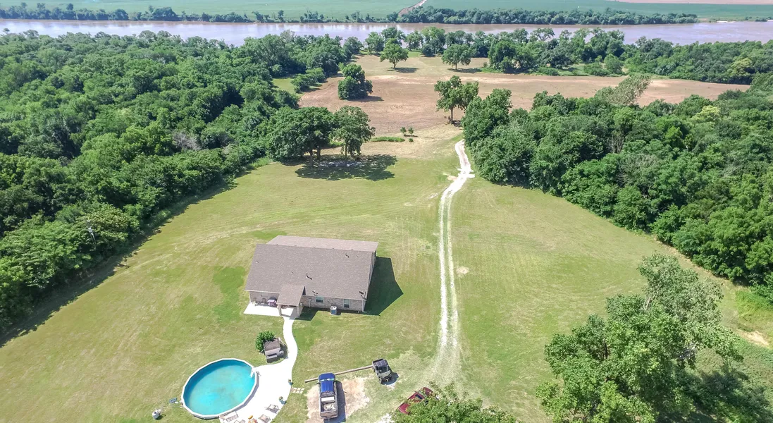 Secluded 45 +/- acres * Abundant Deer, turkey & other predators * Waterfowl * Fishing & water sport opportunity * Ideal for corporate & family retreats * Located from Jct. US 64/412 & US 177, 8 mi. N. on US 177, 3 mi. E. on blacktop road, 3 mi. N, 2 mi. E. & mi. S. & into * Good amount of moderate/heavy native timber * 5 +/- acres of cropland (currently established to beans) * Good grass * Approx. mile of Arkansas River frontage w/ lowering for easy access/exit * Custom blt. & immaculately cared for 2378 +/- sq. ft. Amenities Include: Open concept living area * vaulted ceilings * Stained concrete floors * Big picture windows with outstanding view of the grounds & Arkansas River * Kitchen with breakfast bar, Corian countertops & stainless appliances including a built-in KitchenAid double drawer dishwasher, Frigidaire range, & Samsung built-in microwave * pantry * Nice size dining area * Master suite also with big picture windows & excellent view & lg. walk-in closet * Master bath with double sinks, lg. Jetta brand tub & a separate shower * 2 additional nice size bedrooms * Full guest bath with Jetta brand tub * Big separate utility * plenty of storage * Other Amenities Include: Covered front porch (width of home) with beautiful view of river * wide doors & hallway * solid oak doors * 65 gal. water heater * 2 x 6 stud walls * insulated (R-19) interior walls * R-38 insulation in attic * Acme exterior brick * Malarkey impact resistant singles * Other Improvements Include: 50 x 50 shop with concrete floor, electricity & 8 overhead door * 30 x 50 fully insulated shop with concrete floor, 220/110 elec. & 12 overhead door * Well-cared for 1228 +/- sq. ft. guest home/hunting lodge w/ 3 bedrooms, 1 baths, central h/a, wood burning free standing stove * attached garage & storm shelter * water well (pumps approx. 80 GPM.) * & a 28 round pool (approx.. 5 yrs. old). Property is in the desirable Frontier School District * Be sure to take a look! 15 Taxes: $1,635.00 w/ homestead exemption. Possession: at closing, subject to harvest of bean crop Legal Description: Pt. of N/2 SE/4 & Pt. of Lot 2 in Sec. 21, Twp. 24N, R3 E.I.M., Noble Co.