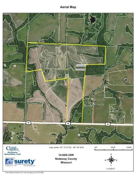 Nodaway County Missouri Row Crop Land for Sale. 78+/- FSA Total Acres, 63.28+/- FSA Tillable acres of which 1.3+/- acres is enrolled in CRP through 2019. CRP contract pays $156 annual payment. Remainder of tillable acres are in row crop production. Farm has blacktop frontage. Located near Guilford MO in Nodaway County Missouri. T62N, R34W, Sec 14. From Stanberry MO, South on 169 app 5 miles to M Hwy. Then West on M app 5 Miles to farm. Farm on North Side of M Hwy. Soils mainly consist of Shelby loam. Farm is rented for the 2018 crop year. Potential for a 4% return on invesment with this farm. Possible building site as well. For additional info contact Dan Mcchristy 816-383-2069.