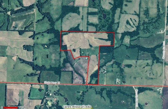 78 acres located near Guilford on Hwy M in Nodaway Co. 51 acres tillable cash rented for $175 through 2015. Asking $2400/acre.