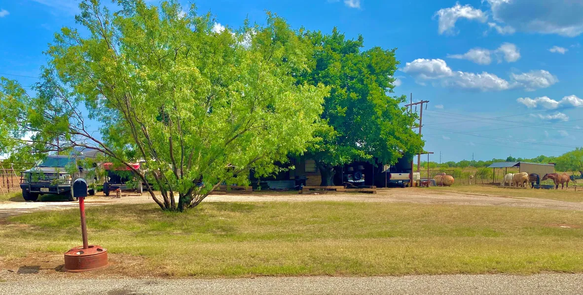 Cute country home in a great location. Close to town yet the privacy of the country. Home has some nice updates with a rustic feel inside. Large covered deck area in the front of the home along with beautiful mature trees and a large tank on the back side of the property perfect for recreation and animals. Nice pipe fencing, huge attached carport (all welded with metal roof), large barn with pins and inside/outside stalls, sea crate perfect for storage, large covered hay barn and a large tank that will stay and could be made into additional storage. There is a set of nice pipe dog pins attached to the backyard, good fencing and gates around the land of the property. Must be pre-qualified to setup a showing. Please call our office about this amazing listing today at 325.235.1522.