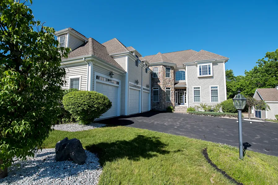 You could be the "King or Queen of The Hill" in this five star neighborhood. This home boasts 5,700+SQ.FT of living with endless possibilities for your office space, au-pair suite, nursery and maybe room for the in-law's. It is perfectly situated, with a birds-eye view of the surrounding neighborhood. The kitchen is packed with convenience! Ample cabinet space, generous center island and sparkling Kitchen Aide appliances! The kitchen opens to an exterior covered porch with a wrap around deck, perfect for relaxing. The formal dining room offers impressive detailing like wainscoting and tray ceiling. The expansive living room welcomes you with grand cathedral ceilings and amazing views, a gas fireplace centered between doors opening out to the deck of your dreams. First floor bedroom has full bath, in addition to a home office with french doors. Stunning front foyer leads up the grand stai...