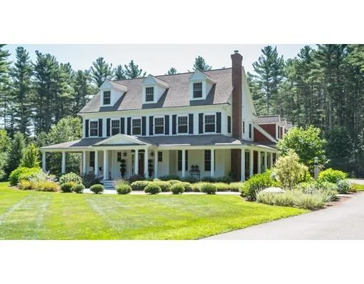 This well designed custom Farmhouse Style Colonial built in 2008 is sited on 3.2 landscaped acres in a walk to school location & convenient to major routes.The interior of the home offers a chef's kitchen with a 15-foot granite island, high-end stainless appliances and a sun-drenched breakfast room all open to the fabulous fireplaced family room. Each of the 5 generous bedrooms has an en suite bathroom and walk-in closet. The home offers two large offices with built-in cabinetry & hardwood floors. The 3rd floor and lower levels are finished with high ceilings and lots of natural light. Other features include wainscoting, moldings, security system, central vac, sound system, irrigation. The exterior features a generous wrap-around porch with rich mahogany decking and an attached 3 car garage.The private backyard has a beautiful stone patio that overlooks the expansive flat lawn.Truly a go...