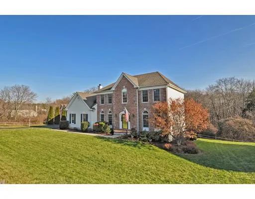 Elegant Brick Front Colonial in Pristine Condition on a Beautiful, Professionally Landscaped Lot. This Luxury Home Features a Gourmet Kitchen with a Large Center Island with Open Floor Plan to the Cathedral Ceiling Family Room w/Gas Fireplace and has Access to a Composite Deck Overlooking the Abutting Woods There is a First Floor Office with Custom Built-in Shelving and Elegant Dining Room w/Tray Ceiling and Pillars Opens to a Formal Living Room. Walk up the Two Story Foyer to Double Doors Leading to the Spacious Master Bedroom with Tray Ceiling & Walk-in Closet w/Custom Shelving. Master Bath Offers a Soaking Tub, Large Tile Shower & Double Sink Vanity. Three Other Good-sized Bedrooms, all with Ample Closet Space and Large Full Bath. An Enormous, Walk-out, Unfinished Basement Leads to an Amazing Stone Patio with an with Custom Stone Fireplace with Extended Chimney.