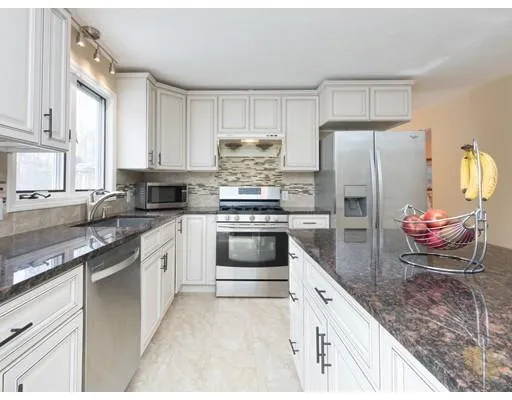 Newly refinished kitchen with ceramic tile floors, granite counter tops, chrome fixtures, mosaic tile backsplash and stainless steel appliances. Bathrooms just updated too! First floor laundry. Bonus room in the basement with projector TV and screen with a extra 3/4 bath. Tranquility of Sharon in the Heights Elementary school district. Close to the Borderland State Park with hiking trails, bike trails and a pond. Minutes away from the public beaches of Lake Massapoag. Sharon was ranked #1 in the top 50 best places to live by Time Magazine.