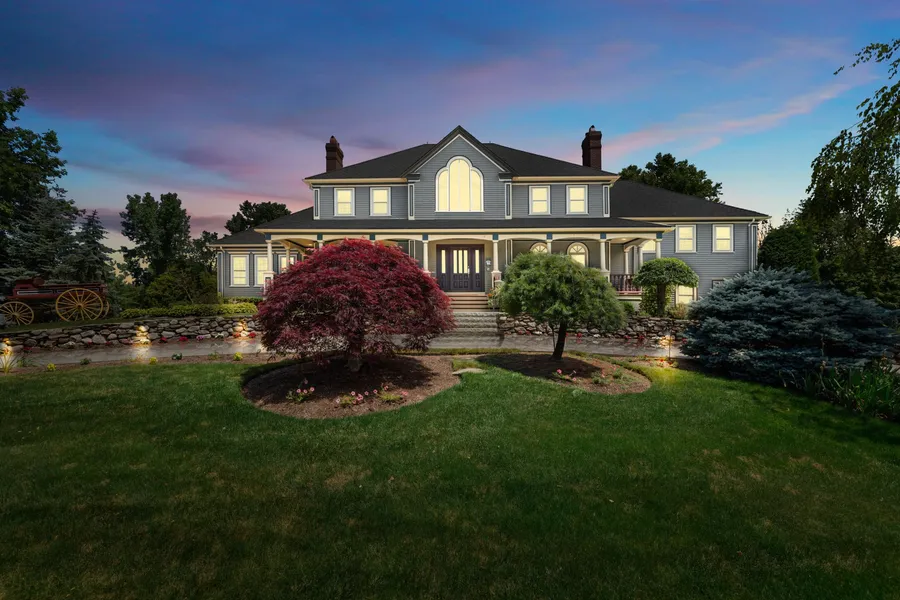 Stunning home nestled in Algonquin Estates was built with entertaining in mind! Welcoming two story foyer with Marble floors and sweeping bridal staircase. Spacious gourmet kitchen with cherry cabinets, granite countertops, top of the line stainless steel appliances, dining area, sitting area and access to large deck that overlooks the pool and grounds. Dining room off kitchen with fireplace and built in cabinetry. Sprawling sundrenched family room. Private first floor office with built in cabinetry. Private spacious owner's bedroom with fireplace, sitting area, walk in closet and private luxury bath. All bedrooms are good sized. Bonus room on the top floor. Finished lower offers game room with custom fireplace and built in cabinetry, gym, kitchenette with custom cabinetry from England and full bath with steam shower. Walk out finished lower level to a stamped concrete patio. Private bac...