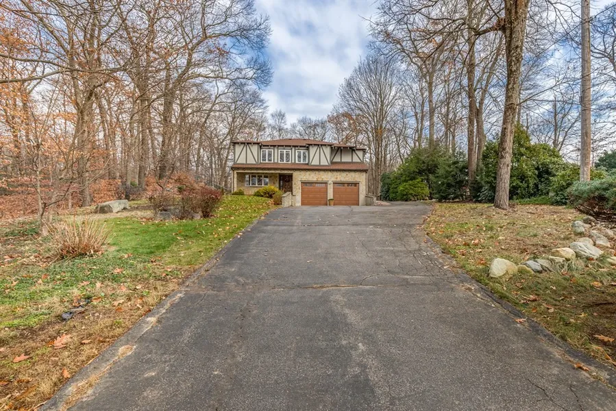 Sprawling contemporary Tudor Style home, situated on hard to find 1.11 acres in desirable Westover Pkwy. Set back & nestled in the woods providing seclusion, yet in a wonderful neighborhood. Impressive stonework line the driveway. Slate stone entry way leads inside to a large family room w/french doors. Spacious kitchen w/custom built cherry cabinets/ granite countertops,double ovens & ss appliances. New hardwood floor in master bedroom..Large living room has skylights, floor to ceiling windows, new wood burning fireplace insert w/blower, exposed beams. Walk out lower level has brand new kitchen, bath and large bedroom/den..ideal for for IN-LAW or extended family. Tucked behind home is a huge detached 2 story building w/tons of storage for contractor supplies or antique cars. Walk up 2nd floor is huge, ideal man cave. Inground sprinkler system, New C/A. brand new roof, bulkhead & garage doors, Scenic location, close to ponds, fisherman club, walking trails, schools & playground