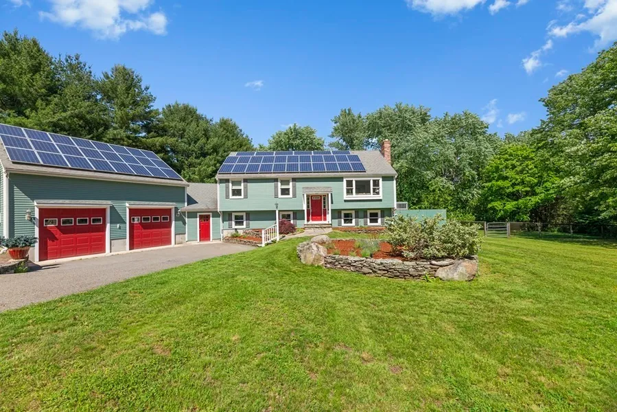 LARGE RAISED RANCH ON A OVER AN ACRE OF LAND ON A CORNER LOT! This four bedroom three full bath home has a flexible floor plan and lots to offer its new owners. First level has a granite kitchen with breakfast bar opening to the dining area. Cathedral ceiling in the enormous living room with fireplace and tons of natural light. Three spacious bedrooms with ample closet space and renovated full bath complete the first level. Lower level offers a fourth bedroom master suite with attached bath, a large family room, hot tub area with slider to the patio, laundry room, and additional full bath. Large family room or workshop addition attached to the oversized 2-4 car garage offers many possibilities. Above the two car garage is large space that can be converted to an In-Law apartment in the future. Large fenced in yard, solar panels that pay you back, heated storage area, newer siding and roof, updated 250 AMP electrical, and much more! FIRST SHOWING AT OPEN FRIDAY 4:30-6:30PM.