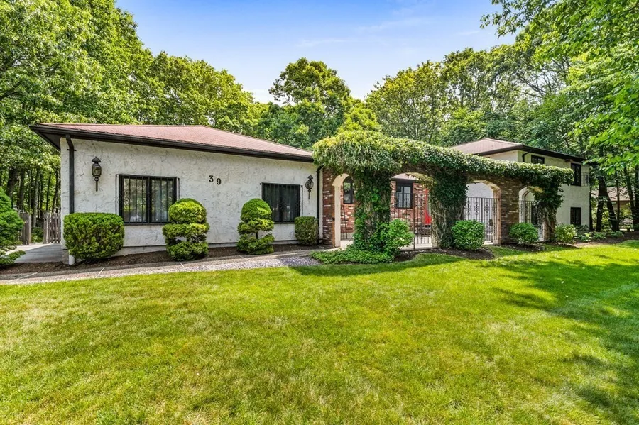 Rare opportunity to live in this solid, well-built & impeccably maintained home in one of Sharon's prestigious & sought after neighborhoods. Loved by one family for the past 39 years, it's now ready for the new owners to make it their own. Enter through a Spanish style infused courtyard to be welcomed into a spacious foyer leading into open concept dining/living room space. You will love vaulted ceilings with skylights & wooden beams adding character to this charming home. Eat-in kitchen features stainless-steel appliances & granite countertops. Upper level offers a spacious Primary Bedroom with ensuite bathroom, ample closet space. Additional 2 bedrooms & a full bath complete this level. The lower-level features a large office, bonus room, spacious family room with fireplace, & access to beautifully landscaped & fenced in backyard. Enjoy entertaining during hot summer days by the pool w...
