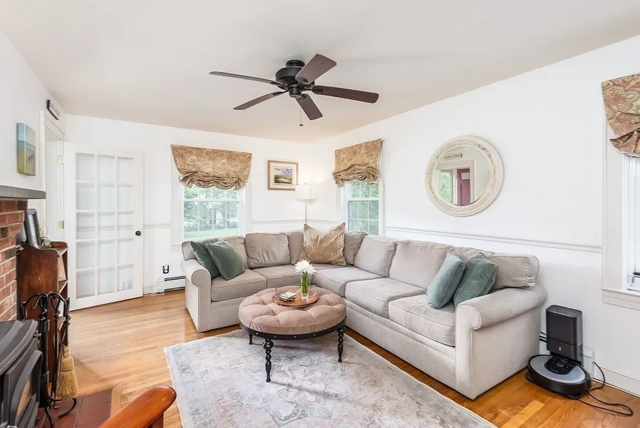Welcome to this charming 3-bedroom home with 2-full baths, stone patio, screened-in porch, hardwood flooring throughout, a single-car garage & a fabulous yard. Stepping through the front door, you enter into a warm & inviting living room w/wood burning fireplace. There is a white kitchen with quartz countertops, stainless steel stove & dishwasher, mudroom entry, a dining room, primary bedroom w/large double closets & a full bath. Upstairs is a stylish newly renovated bathroom with tiled shower & glass door. Two wonderfully sized bedrooms--one with a cozy reading nook! Both have plenty of closet space to store everything! The screened-in porch is an ideal space for sipping morning coffee, unwinding after a long day or entertaining friends & family. The level yard with stone wall in back makes it an excellent space for children or pets to play freely! Convenient location to Sharon town cen...