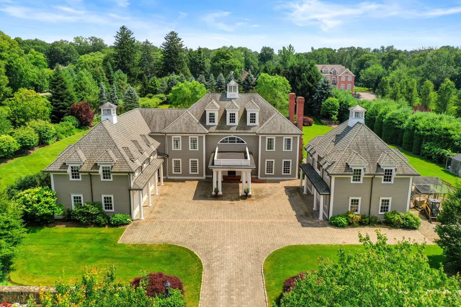 Enveloped in the tranquility of 3 lush acres, this 2002 custom-built luxury estate offers 9,060 sq ft of exquisite living space. Featuring 5 bedrooms, 5 full baths, and 3 half baths, it combines grandeur with sustainability through its geothermal heating, radiant floor heating, and a heated three-car garage. The first-floor study exudes elegance with mahogany coffered ceilings and Brazilian cherry floors, while the living room's Riverstone fireplace and white oak flooring invite cozy gatherings. The gourmet kitchen, equipped with a Blue Star propane cooktop, Thermador double oven, and Subzero refrigerator, is a chef's dream. Entertainment flourishes in the lower level's mahogany bar, movie theater, and outdoor spaces adorned with an apple orchard, koi pond, and bluestone patio. The primary suite, with cherry flooring, a spa tub, and a marble shower, offers a luxurious retreat. Detached workshop w/ a potential au pair suite. This estate promises an unparalleled living experience.