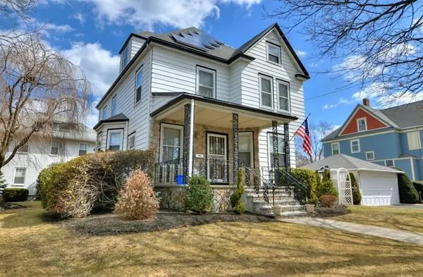 Desirable Quincy Center neighborhood. This meticulously maintained eight room, four bed colonial has been in the family for over eighty five years, and is a short distance to the historic district and the newly revitalized downtown, Hancock Common, First Church, the redline "T" and commuter rail and many new restaurants and condo residences. Many of the updates include a newer kitchen, bath, AC, chimney, solar panels and hot water heater. There is hardwood flooring throughout the house with some natural woodwork, pocket doors and a stunning stained-glass window. The grounds are professionally landscaped. There is a patio with gas grille behind the detached two car garage and additional parking for four cars. There is a spacious unfinished walkup attic (approx. 1,000 sq. ft) that could be finished for a game room or additional bedrooms or office space.
